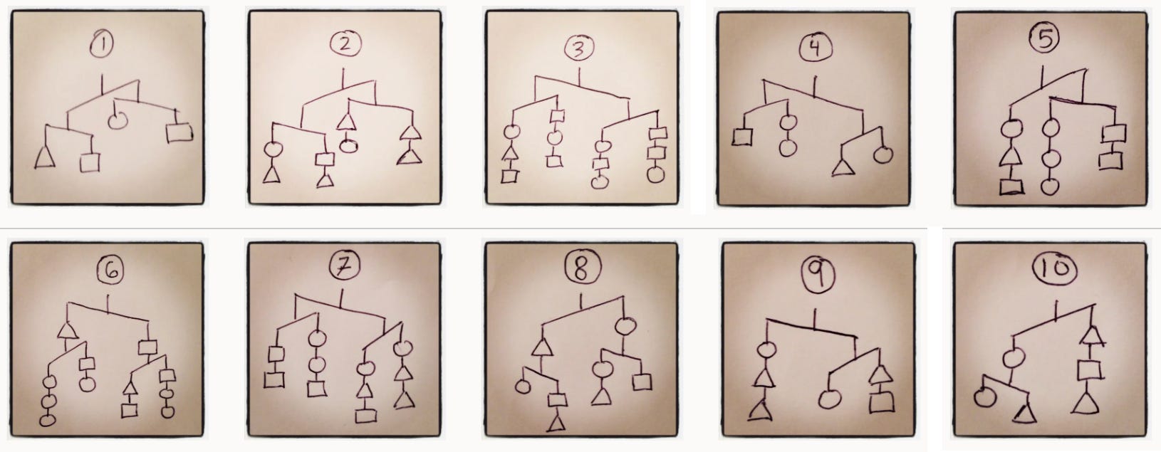 For each puzzle, order the shapes (triangle, square, circle) by weight: