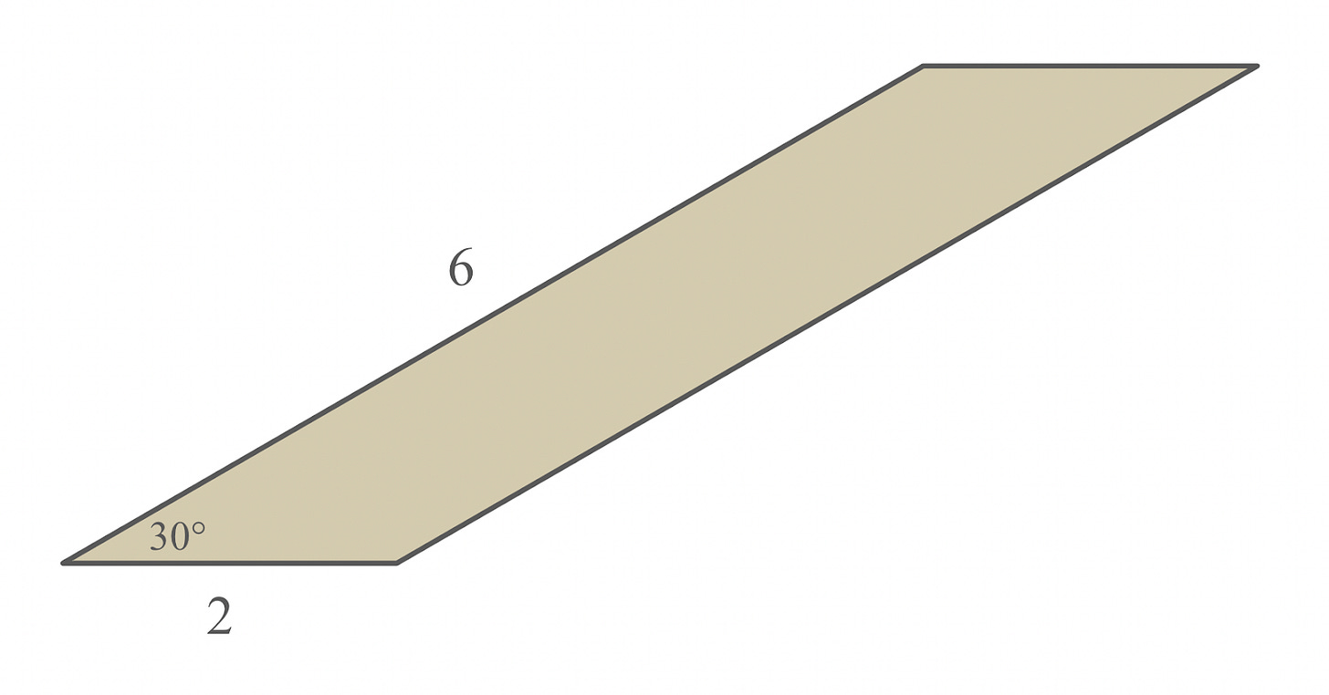 Last week’s puzzle was one worth pondering … on the toilet! You had the parallelogram of cardboard shown below, with side lengths of 2 units and 6 units and angles of 30 degrees and 150 degrees: